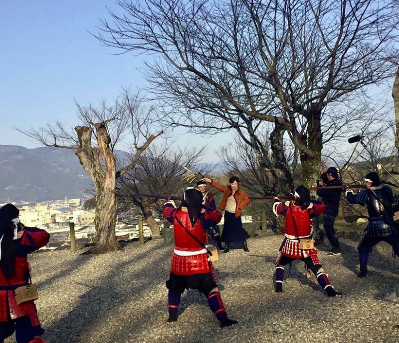 大洲藩鉄砲隊は、江戸時代、大洲藩にあった鉄砲隊を復活させたもので、五代さんも火縄銃の演武を見学します。
