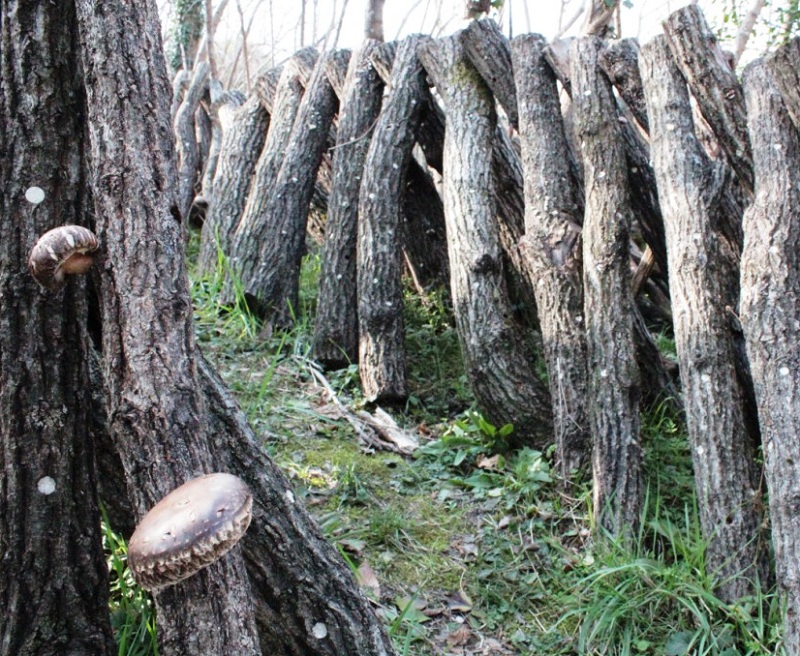そして霧が育む特産のシイタケ農家の成高王洋(なるたかたまひろ)夫妻の畑を訪ね、立ち並ぶ原木椎茸を見学する。