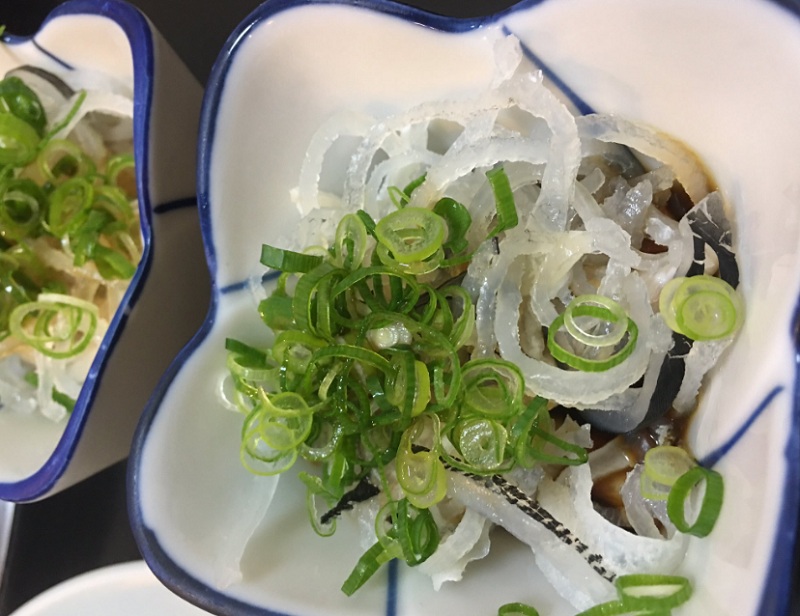 郷土料理「もちゃ」は、フグの刺し身と皮の歯ごたえが良く、そこに爽やかな柑橘のポン酢の美味しさとフグの旨味がたまりません。