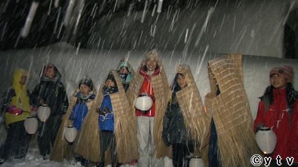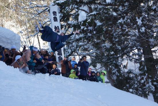 松之山温泉の珍しい伝統行事で、小正月の奇祭「むこ投げ」を見学します。