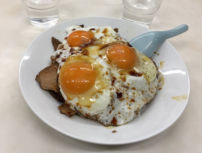 当時は、半熟目玉焼きと切れ端に焼豚の煮汁をかけて食べていたそうで厨房で大人気飯だったそうです。