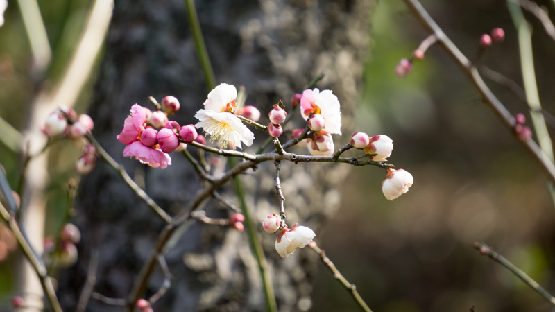 撮影は2月下旬だったので、淡い紅色の花がぽつぽつ咲いていましたが、まだまだ蕾が多かったです。