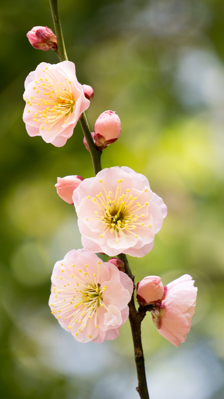 白梅の主要品種で、名前の通り軸も萼(がく)も薄緑色です。
